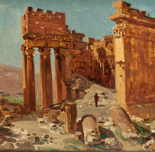 Les Peintres Orientalistes Baalbeck par Georges C. Michelet 1939 – Huile sur toile 44×64 cm. Collection Edward I. Chdid Baalbeck ( autour de 1927) par Freya Madeleine Stark (1893-1993) 47x85cm Baalbeck (1933) par François Marie de Marliave (1874-1953)